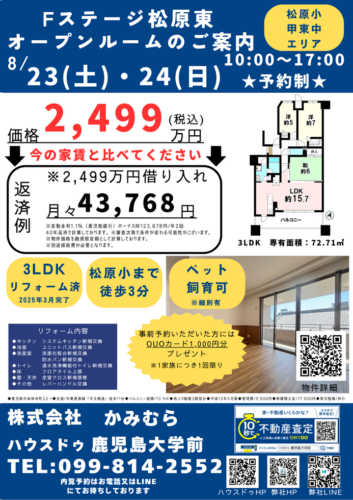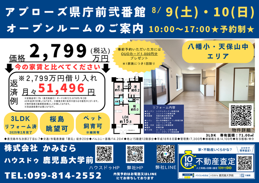 ご予約は、お電話(099-814-2552)またはこちら